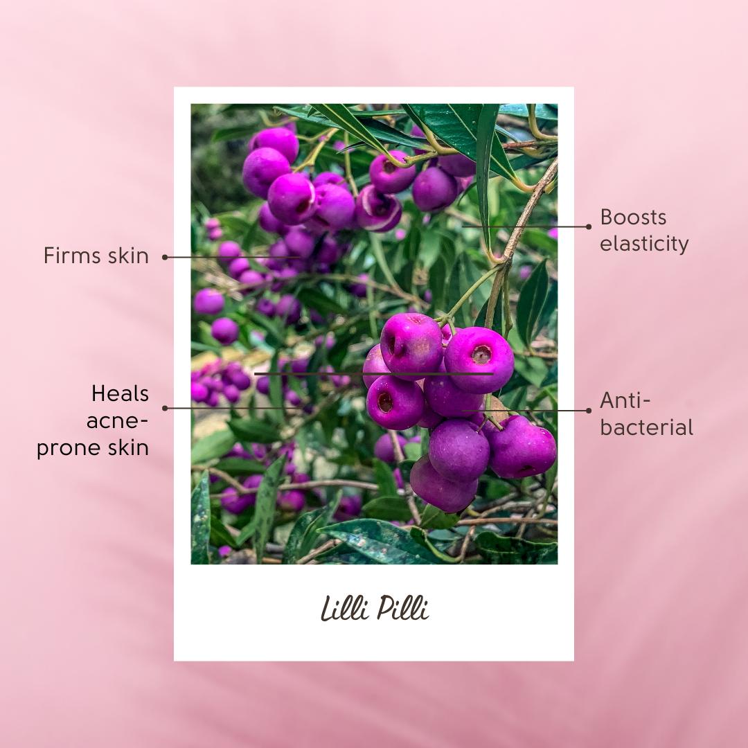 Purified Water, Lauryl Glucoside (Coconut & Sugar Derived), Vegetable (Palm Free) Glycerine, Carica (Papaya) Fruit Extract*, Cocamido Propyl Betaine (Coconut Derived), Ananas Sativus Fruit Extract (Pineapple), Salix Alba (White Willow Bark), Glycyrrhiza Glabra (Licorice) Root Extract*, Syzygium Leuhmanii (Lilli Pilli) Fruit Extract*, Citric Acid, Citrus Aurantium Dulcis (Orange) Peel Oil, Citrus Aurantifolia (Lime) Oil, Citrus Bergamia (Bergamot) Oil, Juniperus Deppeana (Juniper) Oil, Tocopherol (Vitamin E), Hydroxymethylglycinate (Glycine Derived) – * Organic Ingredients