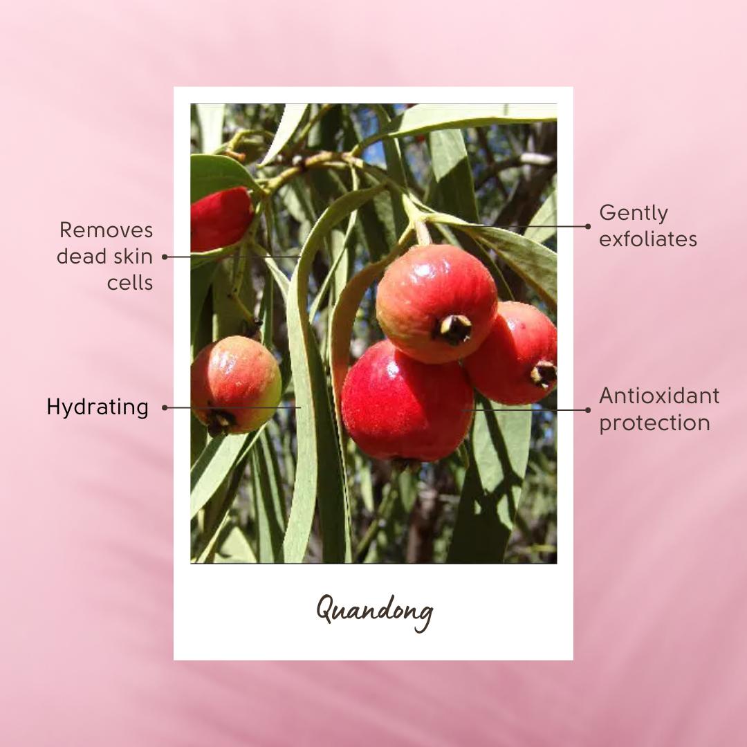 Aloe Barbadensis (Aloe Vera) Juice*, Vegetable (Palm Free) Glycerine, Carica (Papaya) Fruit Extract*, Santalum Acuminatum (Quandong) Extract*, Terminalia Ferdinandiana (Kakadu Plum)*, Solubilizer (Coconut & Almond Derived), Cymbopogon Flexuosus (Lemongrass) Oil*, Citrus Aurantifolia (Lime) Oil, Citrus Bergamia (Bergamot) Oil*, Tocopherol (Vitamin E), Leuconostoc (Radish Root) Ferment Filtrate, Potassium Sorbate (Salt Derived) - * Organic Ingredients
