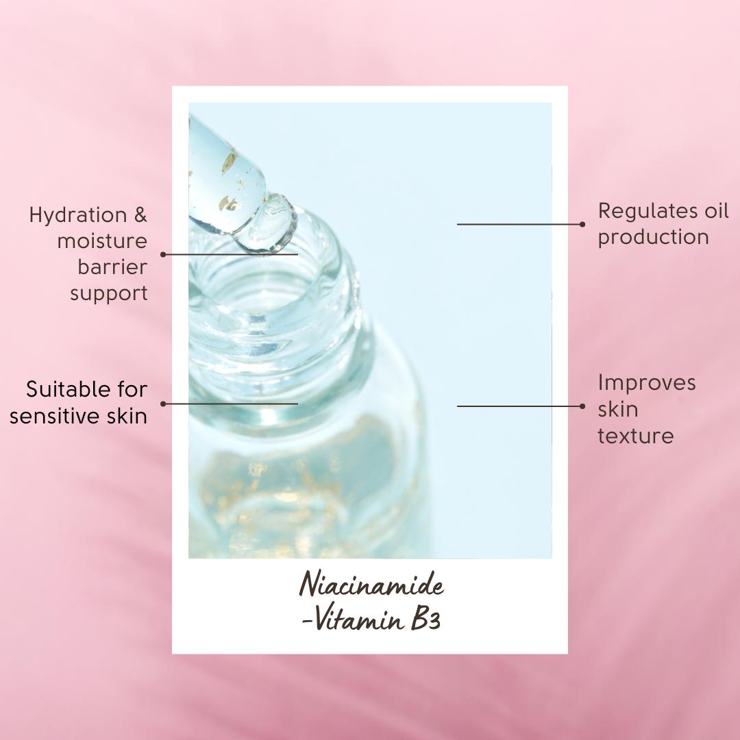 Purified Water, Vegetable (Palm Free) Glycerine, Niacinamide (Vitamin B3), Salix Alba (White Willow Bark), Glycyrrhiza Glabra (Licorice) Root Extract, Panthenol (Vitamin B5), Sclerotium (Mushroom) Gum, Lactobacillus (Radish Root) Ferment, Cocos Nucifera (Coconut) Fruit Extract, Populus Tremuloides (Aspen Bark).